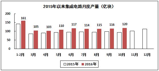元器件產(chǎn)品產(chǎn)銷較快增長。1-10月,工業(yè)和信息化部監(jiān)測的重點(diǎn)聯(lián)系企業(yè)電子元件生產(chǎn)同比增長19.3%,銷售增長17.8%,出口下降10.8%。集成電路生產(chǎn)增長18.8%,銷售增長16.5%,出口增長14.1%;半導(dǎo)體分立器件生產(chǎn)增長5.3%,銷售增長7.6%,出口下降1.4%。液晶面板生產(chǎn)同比增長13.3%,銷售增長12.0%,出口增長4.3%。