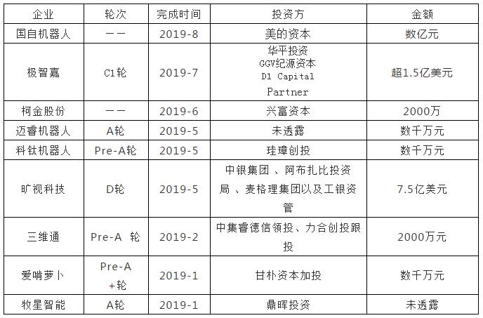 表:2019年移動機器人企業融資表(粗略統計,未完善之處請指正)