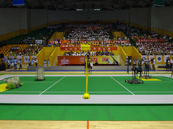 全國(guó)大學(xué)生機(jī)器人大賽(Robocon)是亞太大學(xué)生機(jī)器人大賽的國(guó)內(nèi)選拔賽。今年大賽主題為“羽球雙雄”,即運(yùn)用機(jī)械制圖、電子電路、單片機(jī)、傳感技術(shù)、自動(dòng)控制、圖像處理、計(jì)算機(jī)編程語(yǔ)言、電機(jī)拖動(dòng)等多學(xué)科知識(shí),設(shè)計(jì)制作兩臺(tái)機(jī)器人相互協(xié)作發(fā)球和接球,在正規(guī)羽毛球場(chǎng)內(nèi)進(jìn)行機(jī)器人雙打比賽。大賽于2014年下半年開(kāi)始啟動(dòng),吸引了全國(guó)近百所高校報(bào)名參加。經(jīng)過(guò)5月上旬全國(guó)復(fù)賽篩選,共有36所高校代表隊(duì)入圍決賽。
